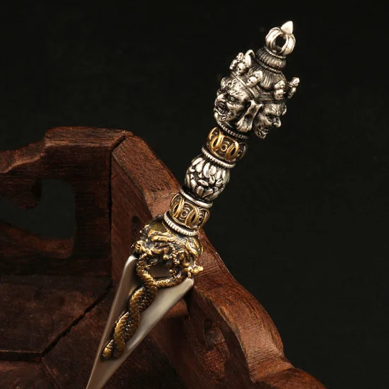 * Nguyên văn “hàng ma xử”, xử là cái chày. Trong phật giáo ta còn kêu là chày kim cang. Tên sao nghĩa vậy, nó là vật dùng để hàng ma, ngoài ra còn có thể trừ bỏ ngu si vọng tưởng trong tâm. Tuy gọi “chày” nhưng nó nhọn một đầu, nhìn giống cây kích hơn là cái chày để giã gạo hay giã thuốc.